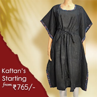 Grey Cotton Jharna Pattern Kaftan with Blue Border