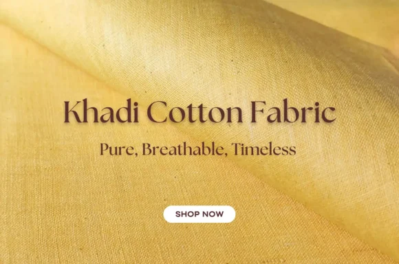 Deep Yellow With Dark Brown Shaded Cotton Fabric With Stripe