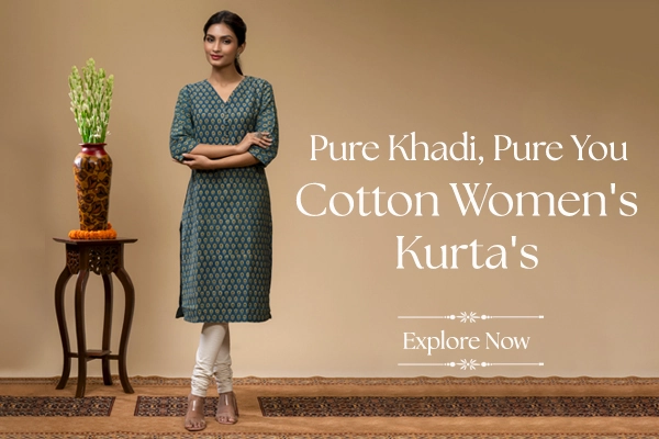 Grey With Parrot Green & Deep Blue Jharna Pattern Cotton Kurta