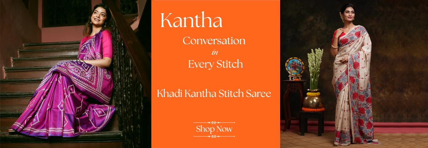 Deep Pink Floral Kantha Work Raw Silk Women's Kurta