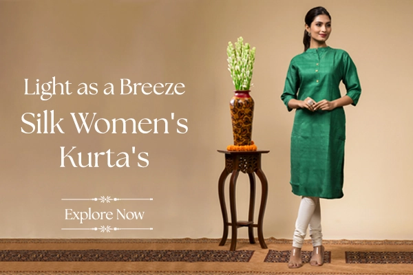 Pink With White Leaf Motif Batik Work Silk Women's Kurta