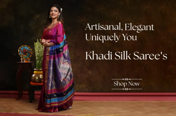Solid Deep Pink with Cream Block Print Silk Women’s Kurta