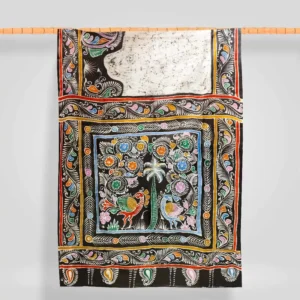 Solid Black With Figure Motif Hand Printed Silk Saree