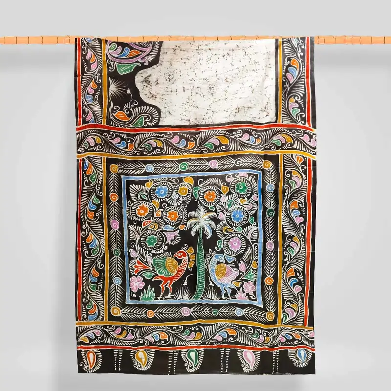 In summary, embrace the beauty of slow fashion and own a piece of wearable art that seamlessly blends the heritage of Bishnupuri silk, the technique of Batik, and the soul of Madhubani art.