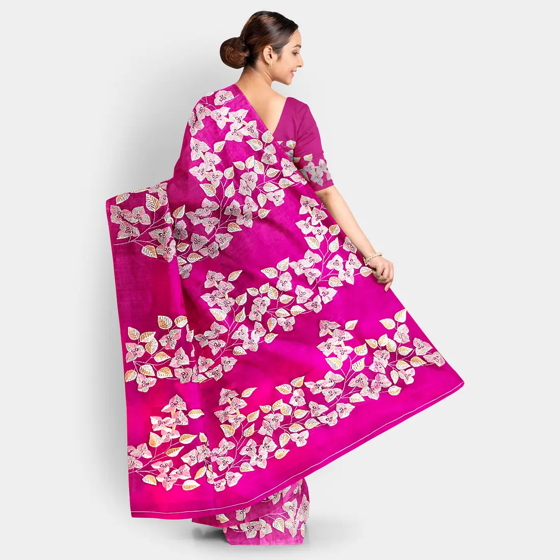 - Work: Hand-embroidered Leaf Motif Kantha Stitch on Border and Pallu.