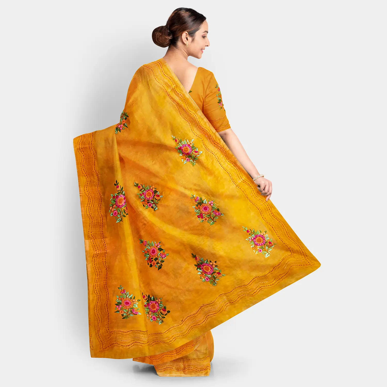 - Work: Floral Parsi Buti with Kantha Stitch Border.