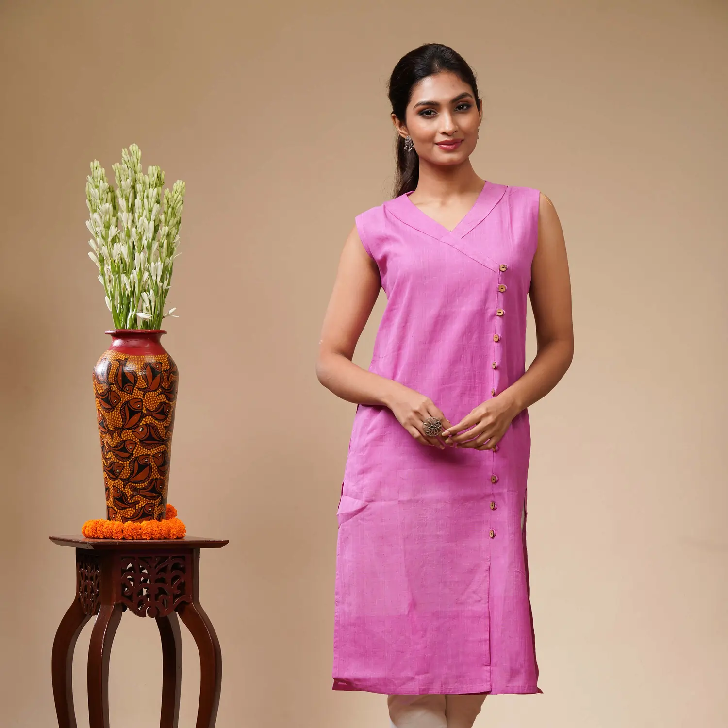 Drape yourself in a legacy of comfort and conscience. This kurta is for the woman who values stories woven into her wardrobe—a symbol of slow fashion, artisan pride, and understated, confident style.