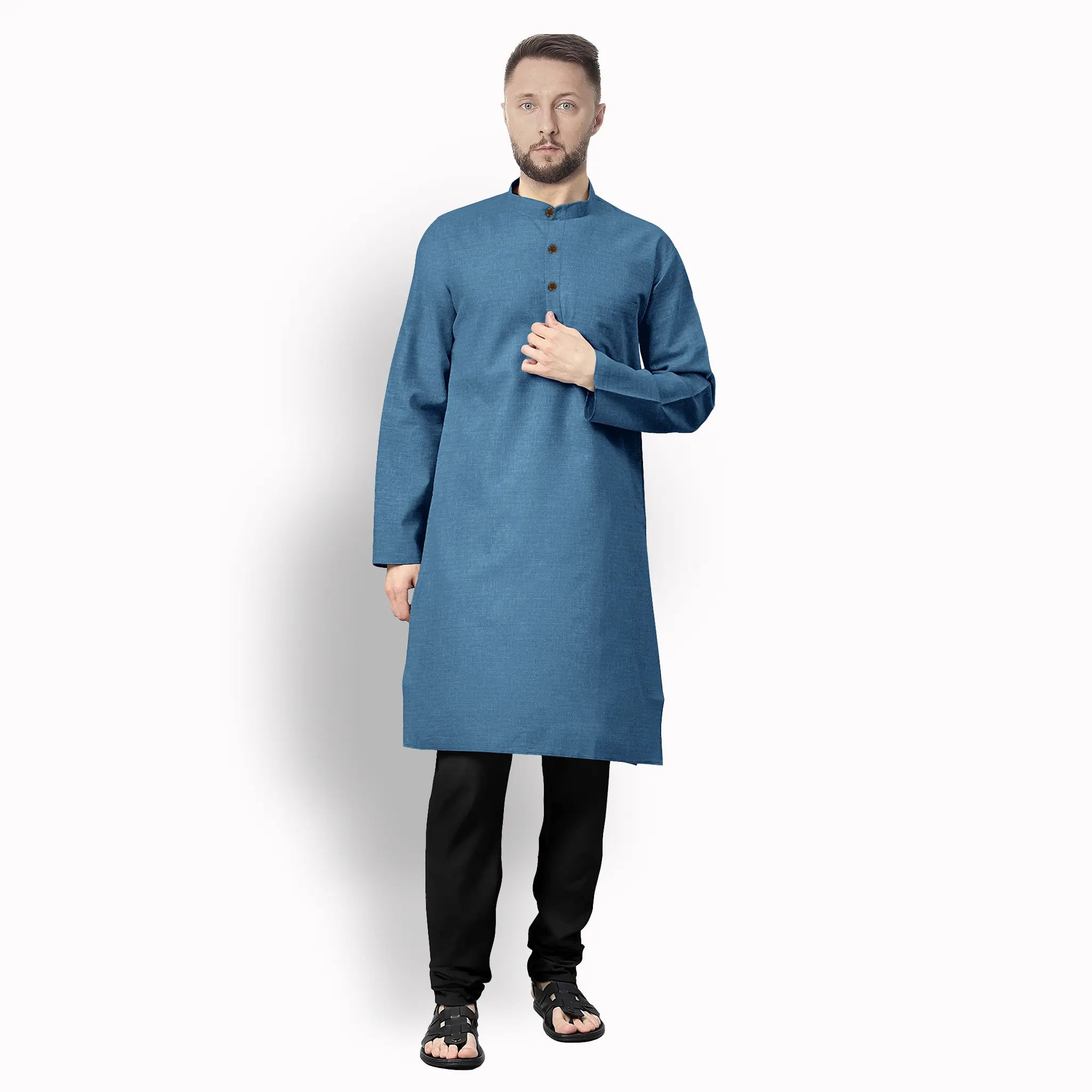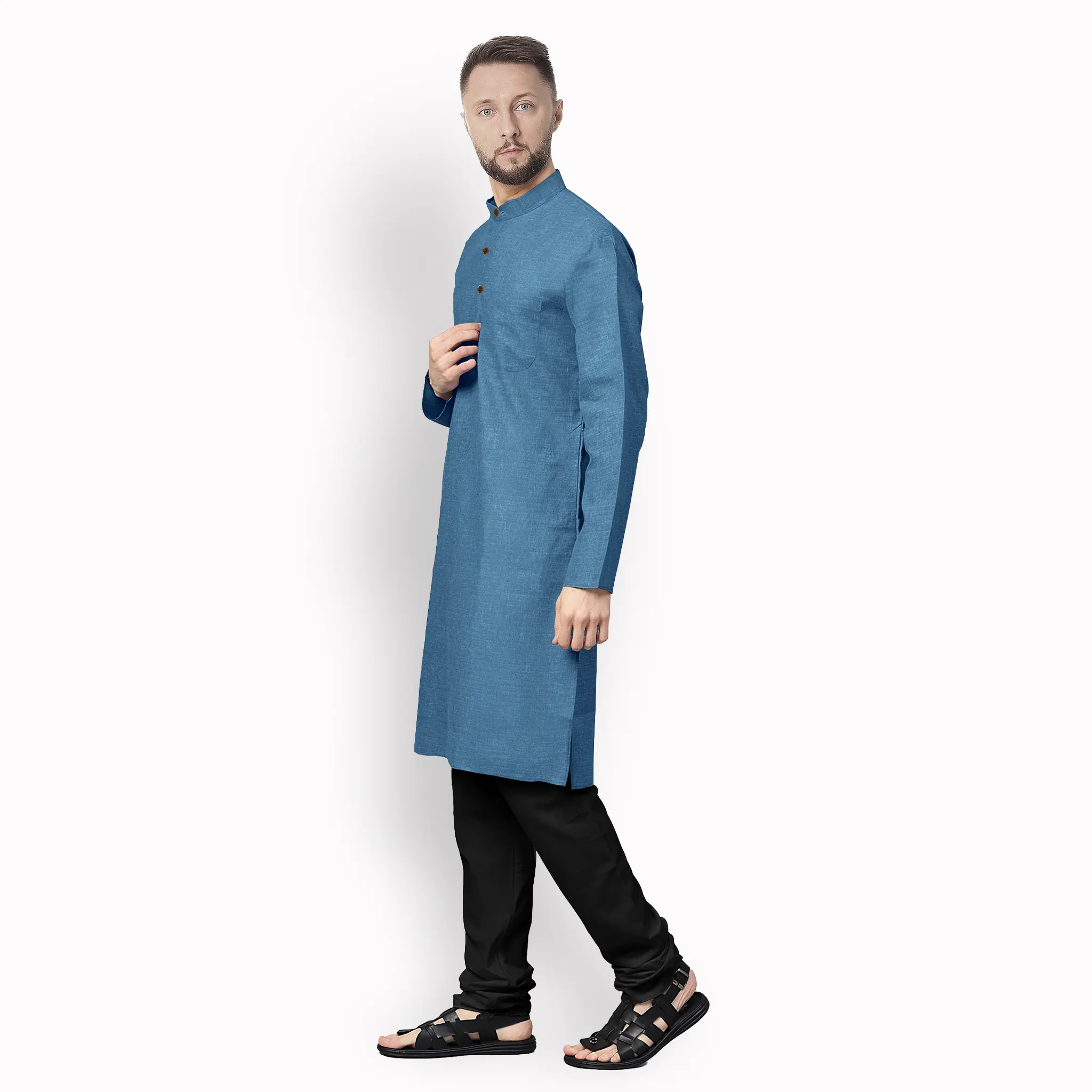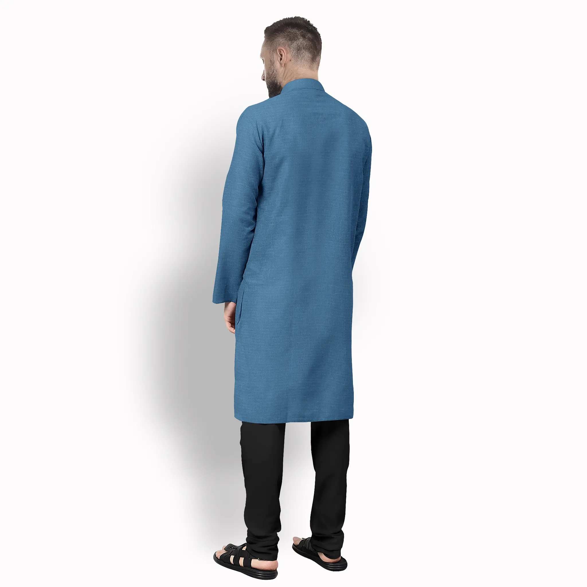 Rendered in a profound, solid steel blue, this kurta exudes a calm and confident elegance. The clean lines and minimalist aesthetic are elevated by thoughtful details: