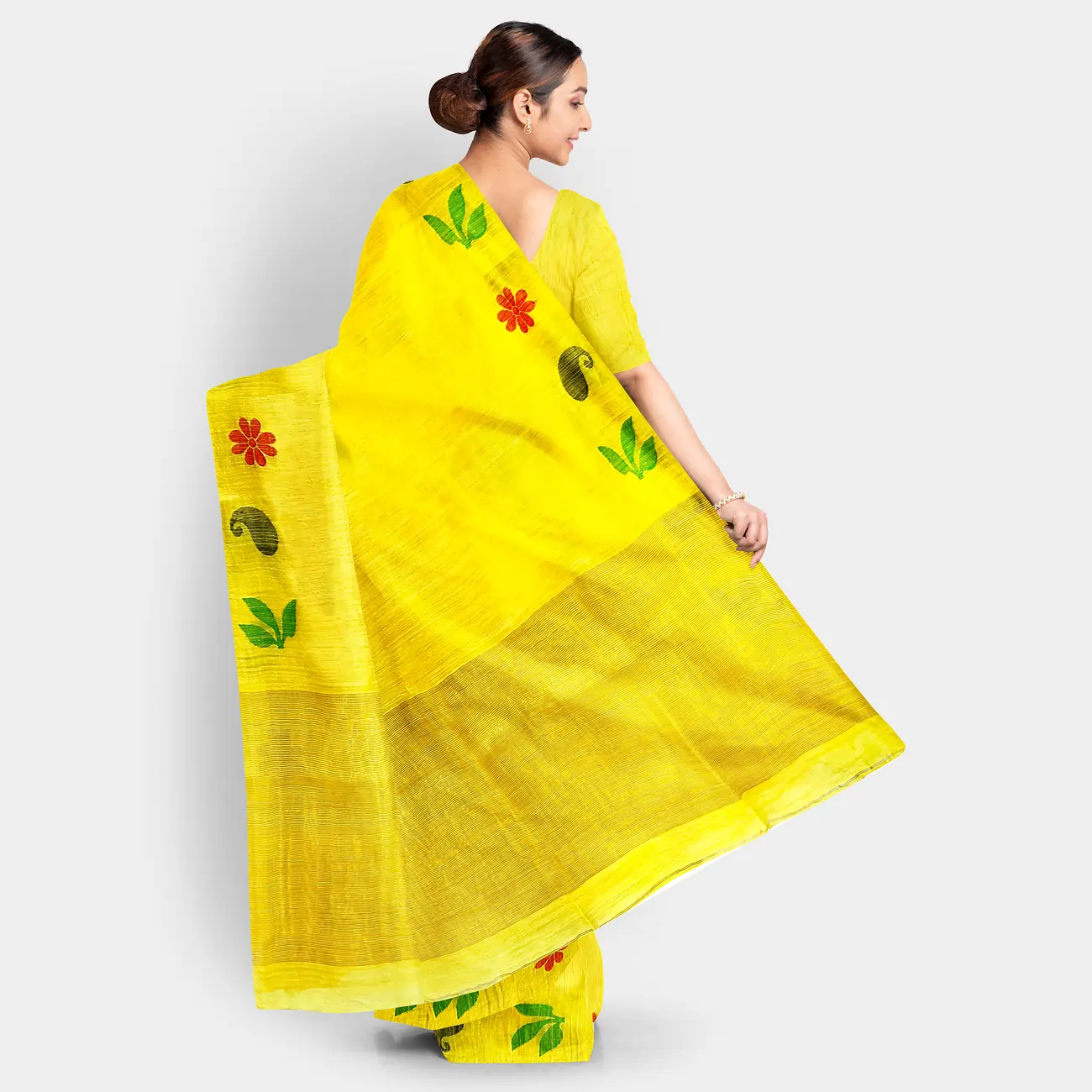 This Khadi Silk Saree is an investment in artistry and elegance. It’s an ideal choice for festivals, weddings, pujas, or any special occasion where you wish to make a statement of sophisticated, traditional style.